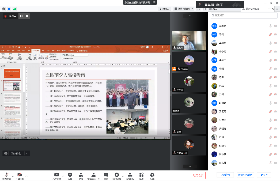 2022年5月20日下午,Beat365官方网站、非洲学院全体教师集中理论学习活动在线进行。马克思主义学院党总支书记祝和军为两院全体教师进行了题为“习近平总书记考察人民大学讲话精神与思政课程建设”的讲座。学习活动由Beat365官方网站、非洲学院党总支书记许晔主持。