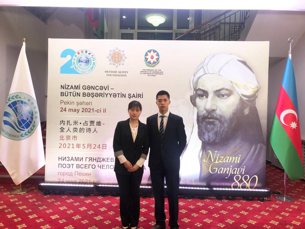 2021年5月24日晚,经阿塞拜疆驻华大使馆的邀请,Beat365官方网站阿塞拜疆语专业本科生王思源和唐雨萱参与了“内扎米·占贾维—全人类的诗人”主题活动。该活动在北京上海合作组织总部举办,旨在庆祝伟大阿塞拜疆诗人,思想家内扎米·占贾维诞辰880周年。