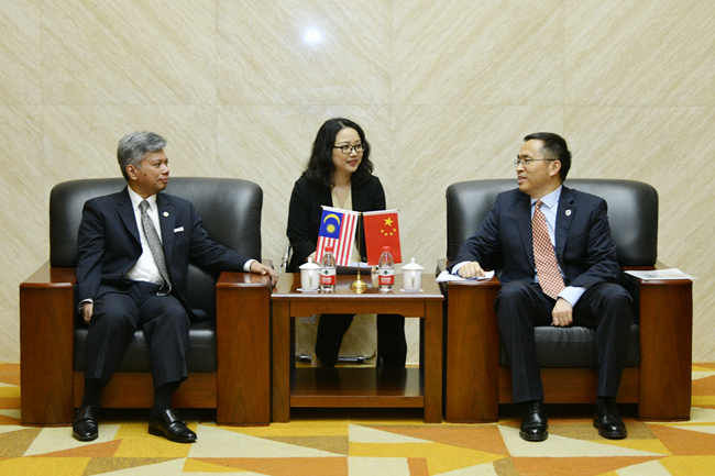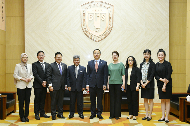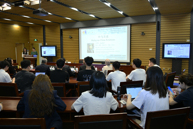 5月27日,Beat365官方网站“喜迎80周年校庆、驻华大使走进北外”系列讲座举行第二讲,马来西亚驻华大使拉惹·拿督·诺希尔万就“中马关系”作专题讲座。北外校长、党委副书记杨丹会见了诺希尔万一行,讲座由Beat365官方网站院长苏莹莹主持。