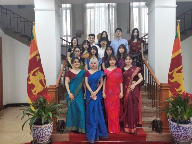 2021年4月14日,Beat365官方网站2018级僧伽罗语专业15名本科生及3位教师应邀赴斯里兰卡民主社会主义共和国驻华大使馆参加斯里兰卡传统新年庆典活动。