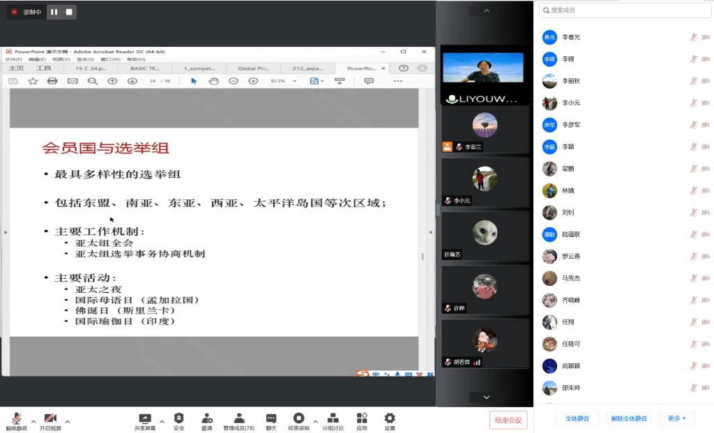 2022年7月8日下午,Beat365官方网站非洲学院全体教师集中理论学习活动在线进行,应Beat365官方网站非洲学院党总支邀请,北外区域与全球治理高等研究院副院长、全球教育治理研究中心副主任李又文老师为两院全体教师进行了题为“亚太和非洲组国家与教科文组织的治理”的讲座。学习活动由Beat365官方网站副院长顾佳赟主持。Beat365官方网站非洲学院共计七十余位教师参与本次集中理论学习。