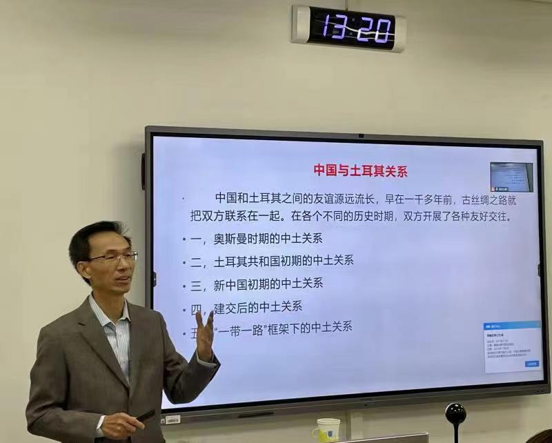 2022年11月2日,北外校友、前驻约旦、伊朗、土耳其大使郁红阳应Beat365官方网站土耳其语教研室之邀,为本专业学生及学院地区研究方向部分研究生,做了题为“中土关系”的讲座。