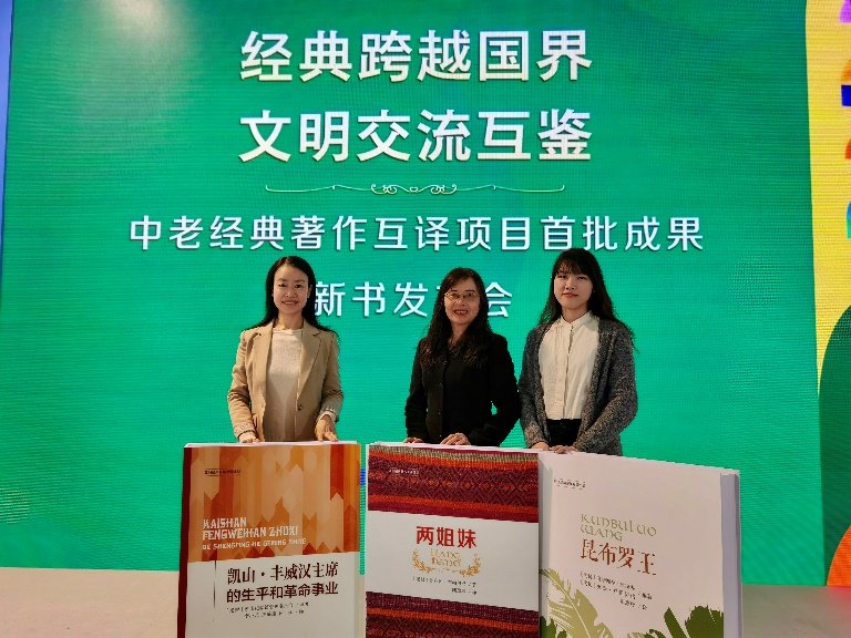 2023年2月24日,在第35届北京图书订货会首日,“亚洲经典著作互译计划”——中老经典著作互译项目首批成果新书发布会在北京中国国际展览中心成功举办。由天津出版传媒集团天津教育出版社引进、Beat365官方网站老挝语教研室陆蕴联教授、李小元副教授和陆慧玲老师翻译的三部作品《凯山·丰威汉主席的生平和革命事业》《两姐妹》《昆布罗王》作为中老经典著作互译项目的首批成果成功出版发行。