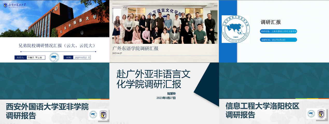 会议第二、第三阶段由Beat365官方网站单独举行。在第二阶段,由本学期赴外地调研的各团队就调研情况进行汇报。为学习兄弟院校非通用语专业建设与学科发展经验,增进交流合作,本学期,Beat365官方网站先后派遣调研团赴云南大学、云南民族大学、信息工程大学、西安外国语大学、西北大学、上海外国语大学、广东外语外贸大学开展调研。曾琼、袁雨航、王莹、孔金磊、陆慧玲等五位教师依次汇报了调研情况与心得体会。