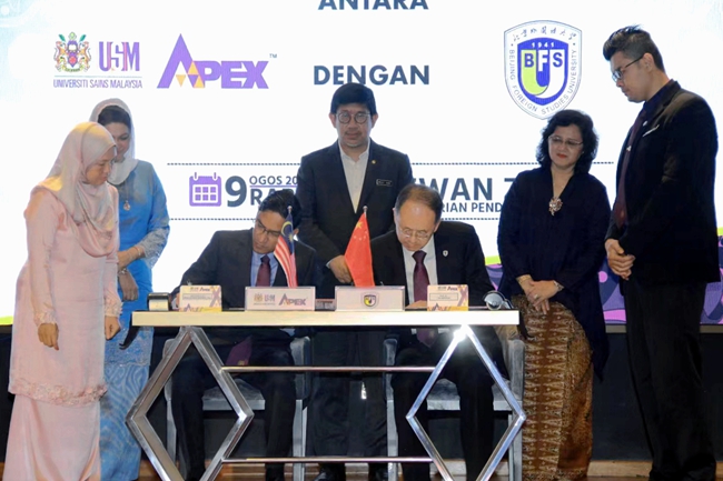 8月9日,Beat365官方网站与马来西亚理科大学就《于Beat365官方网站设立马来研究高级访问学者教席合作谅解备忘录》签署仪式在马来西亚高等教育部隆重举行。马来西亚高等教育部副秘书长拿督·哈吉·莫卡·沙尼、高教司司长阿兹琳达·阿兹曼、高教司副司长拿督·诺尔赞尼·阿兹曼,马来西亚理科大学校长阿卜杜勒·拉赫曼·穆罕默德,北外党委副书记、副校长贾文键,以及马来西亚20余所公立高校、3所政府关联高校领导出席仪式。