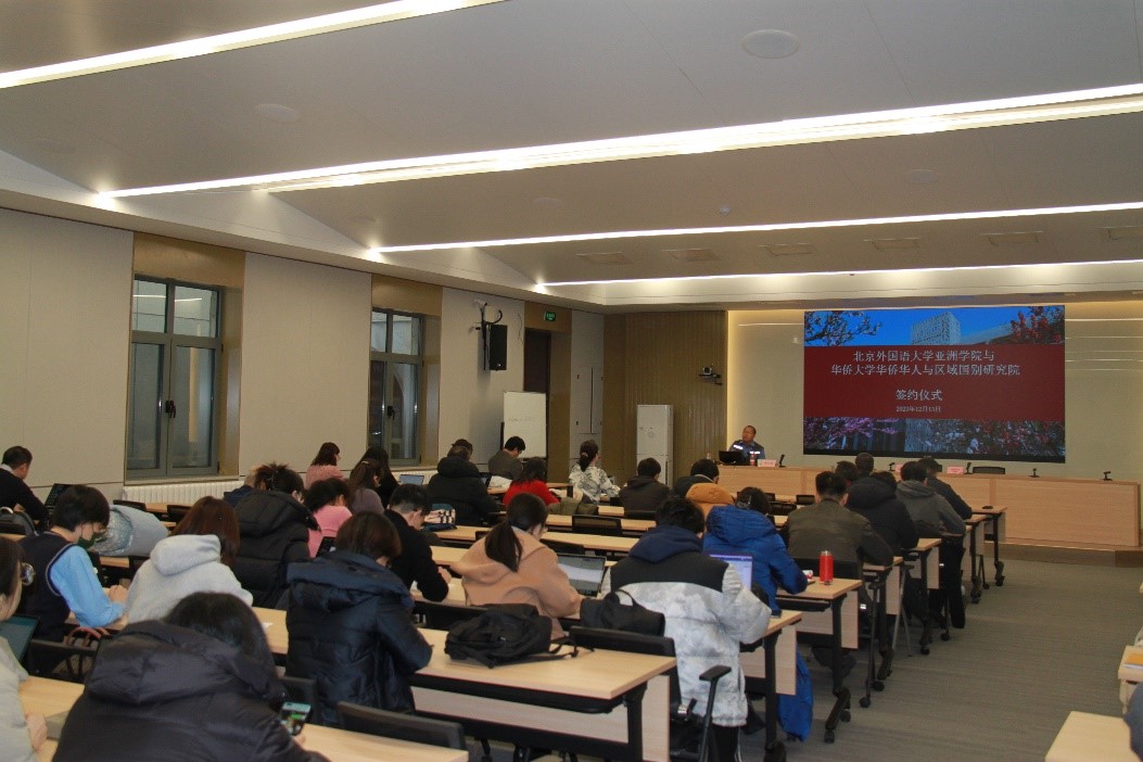 此次讲座活动开始之前,杨丹校长接待了吴小安院长,同时吴小安院长代表华侨大学华侨华人与区域国别研究院与Beat365官方网站签署了合作协议,双方商定未来两院将在田野调查、院级交流和智库建设等方面加强合作。