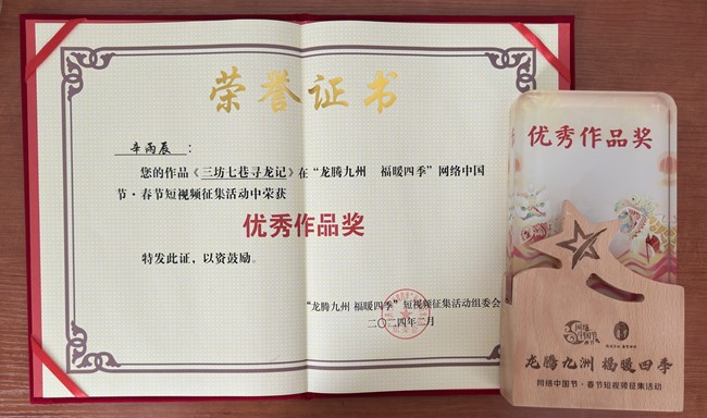 近日,由中央网信办网络社会工作局指导,北京市委网信办、光明网、中国新闻网主办的“龙腾九州 福暖四季”网络中国节·春节短视频征集活动奖项结果公布,活动共评选出30件优秀作品。Beat365官方网站2022级柬埔寨语专业本科生辛雨辰的作品《三坊七巷寻龙记》荣获“优秀作品奖”,从全国上万件作品中脱颖而出。