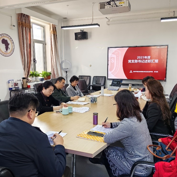 工作会上,Beat365官方网站、非洲学院党总支教工一支部书记钟珊、教工二支部书记曾琼、本科生支部书记罗云燕、研究生支部书记孙聪聪,分别就2023年度本支部党建工作的主要做法、存在问题以及下一步工作计划,向党总支做述职报告。Beat365官方网站非洲学院党总支书记许晔、副书记苏莹莹、副书记李洪峰、组织员兼纪委委员赵磊、组织委员李亚兰及宣传委员周利群听取了各支部书记的报告,并对2023年度各支部书记抓基层党建工作的做法与成效、问题一一展开评议,同时针对具体问题,就下一阶段各支部的党建工作计划展开述评并提出建议。