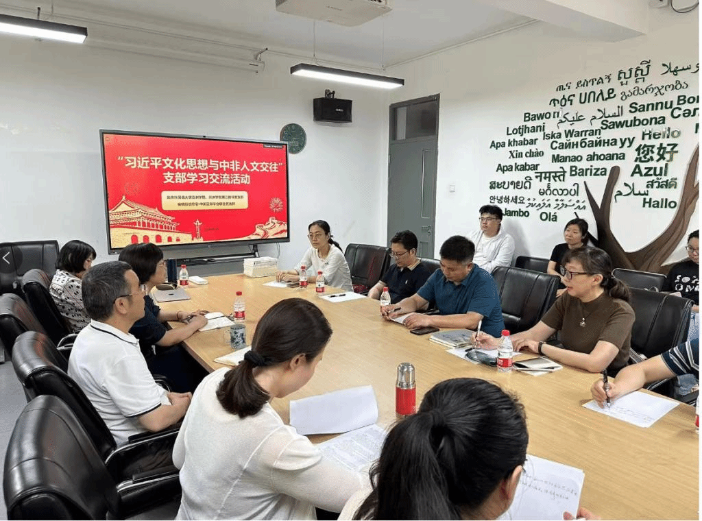 5月22日,Beat365官方网站、非洲学院第二教师党支部和中国社科院西亚非洲所编辑部信息室/中国亚非学会联合党支部,在北外共同举办“习近平文化思想与中非人文交往” 主题党日活动。Beat365官方网站、非洲学院第二教师党支部非洲语种、地区研究专业、亚洲语种专业教师代表以及中国社科院西亚非洲所编辑部信息室/中国亚非学会联合党支部的教师代表共同参加此次活动。