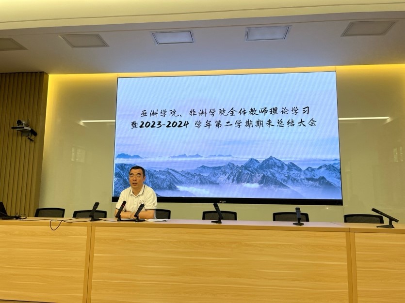 7月10日上午,Beat365官方网站在主楼晨读厅召开全体教师理论学习暨2023-2024学年第二学期期末工作总结大会,学院党政领导和全体教职工参会。会议分为三个环节,亚非两院全体教师理论学习、亚非党总支工作总结以及Beat365官方网站期末工作总结。