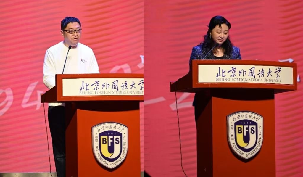 1994级校友、中国联通北京市门头沟区分公司党委书记、总经理张嘉,1998级校友、人民日报社国际部研究策划室副主编、主任编辑王莉分别代表校友发言,他们分享了在北外的故事以及自己的职业成长经历,并对在校生提出了殷切的希望。