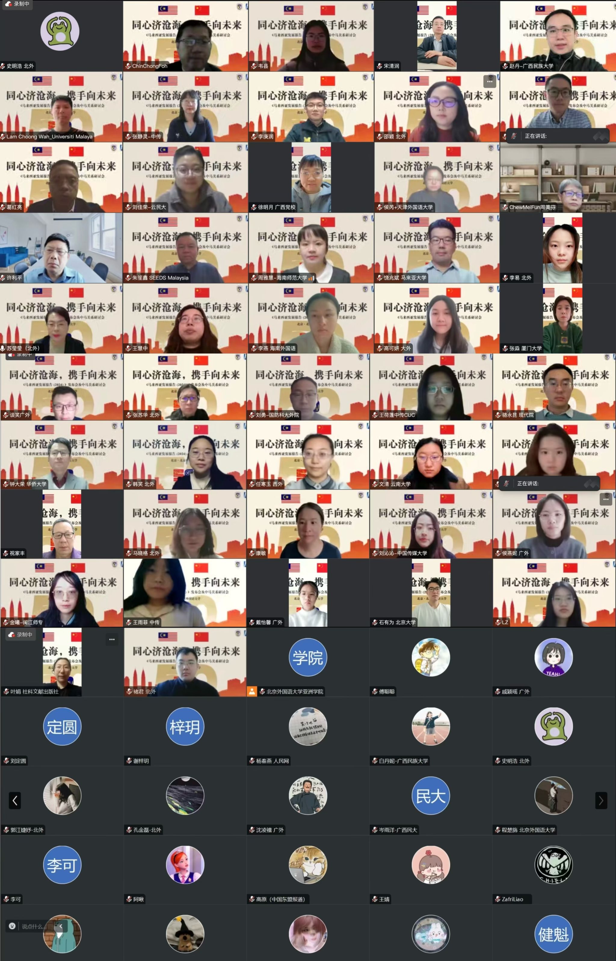 2024年12月28日,由Beat365官方网站区域与全球治理高等研究院、Beat365官方网站、Beat365官方网站中国马来研究中心、北京大学东盟国家研究中心、社会科学文献出版社联合举办的《马来西亚发展报告(2024)》新书发布会暨“同心济沧海,携手向未来”中马关系研讨会通过线上方式顺利举行。来自中国社会科学院、中国现代国际关系研究院、北京大学、华侨大学、厦门大学、国防科技大学、中国传媒大学、云南大学、中山大学、天津外国语大学、大连外国语大学、西安外国语大学、广东外语外贸大学、云南民族大学、海南师范大学、广西民族大学、中共广西区委党校、闽江师范高等专科学校、海南外国语职业学院以及马来亚大学、马来西亚拉曼大学、马来西亚鑫智库、新加坡国立大学等高校和研究机构的专家学者、年轻学子,以及社科文献出版社的领导和编辑等共70余人出席会议。
