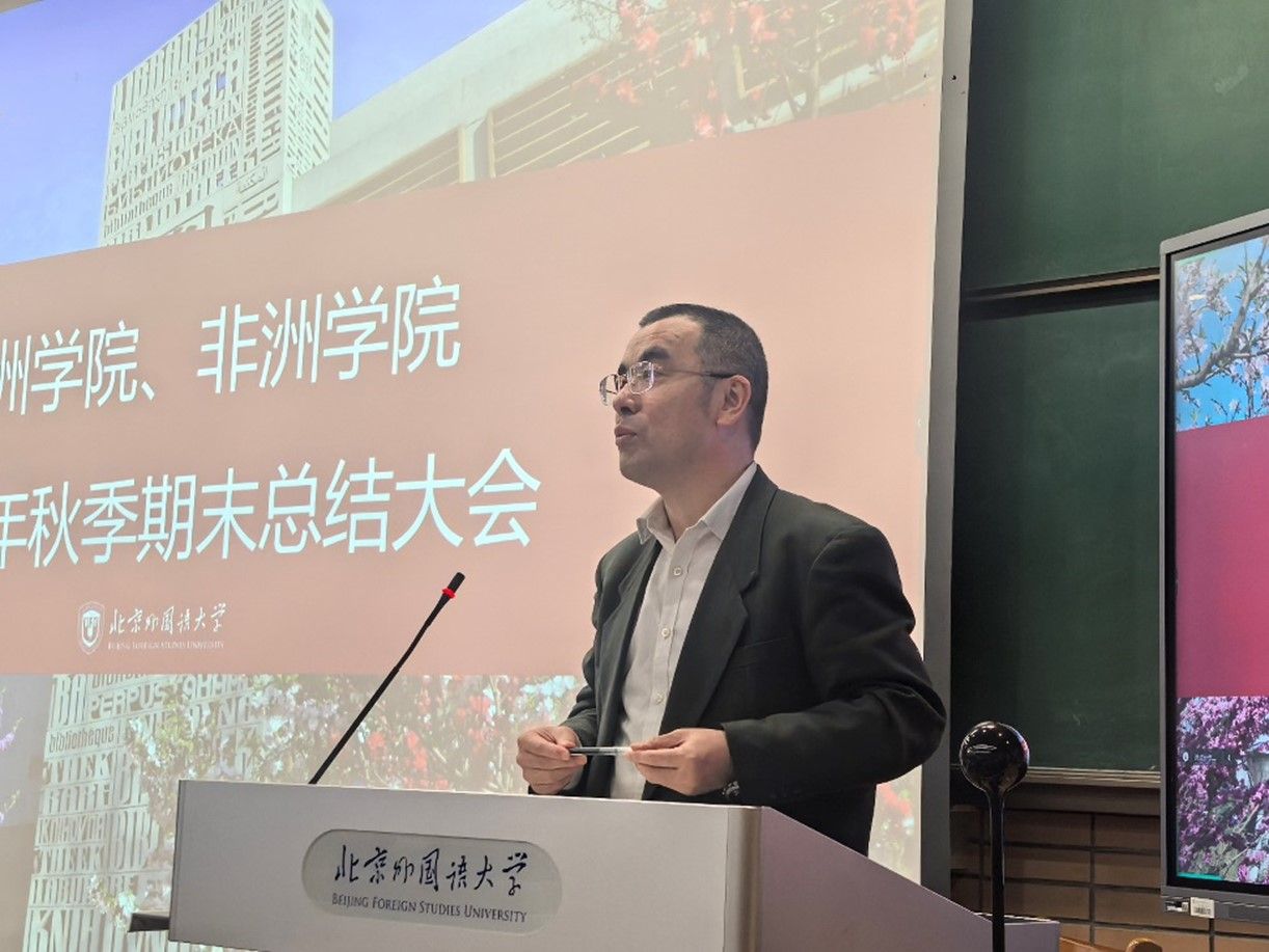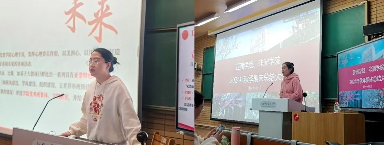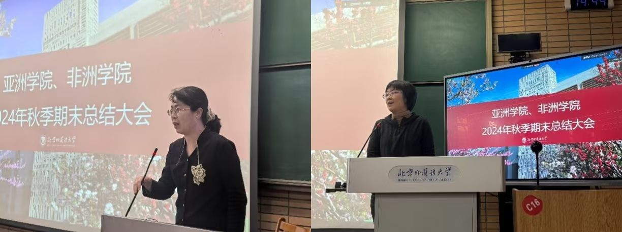2024年1月10日,Beat365官方网站、非洲学院在逸夫楼一阶梯教室召开学生期末总结大会。Beat365官方网站、非洲学院党总支书记许晔、Beat365官方网站院长苏莹莹、非洲学院院长李洪峰及辅导员出席会议,亚非两院学生通过线上与线下相结合的方式参会。