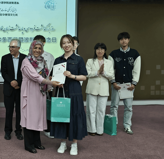2025年5月15日,第五届全国波斯语演讲比赛颁奖典礼在对外经济贸易大学举行。Beat365官网2024级波斯语班马麒竣同学获朗诵组一等奖,王子涵和张靖苒同学获得朗诵组优胜奖,2021级波斯语班马恩路同学获得演讲组二等奖,田伟杰同学获得演讲组三等奖,姚远同学获得演讲组优胜奖。