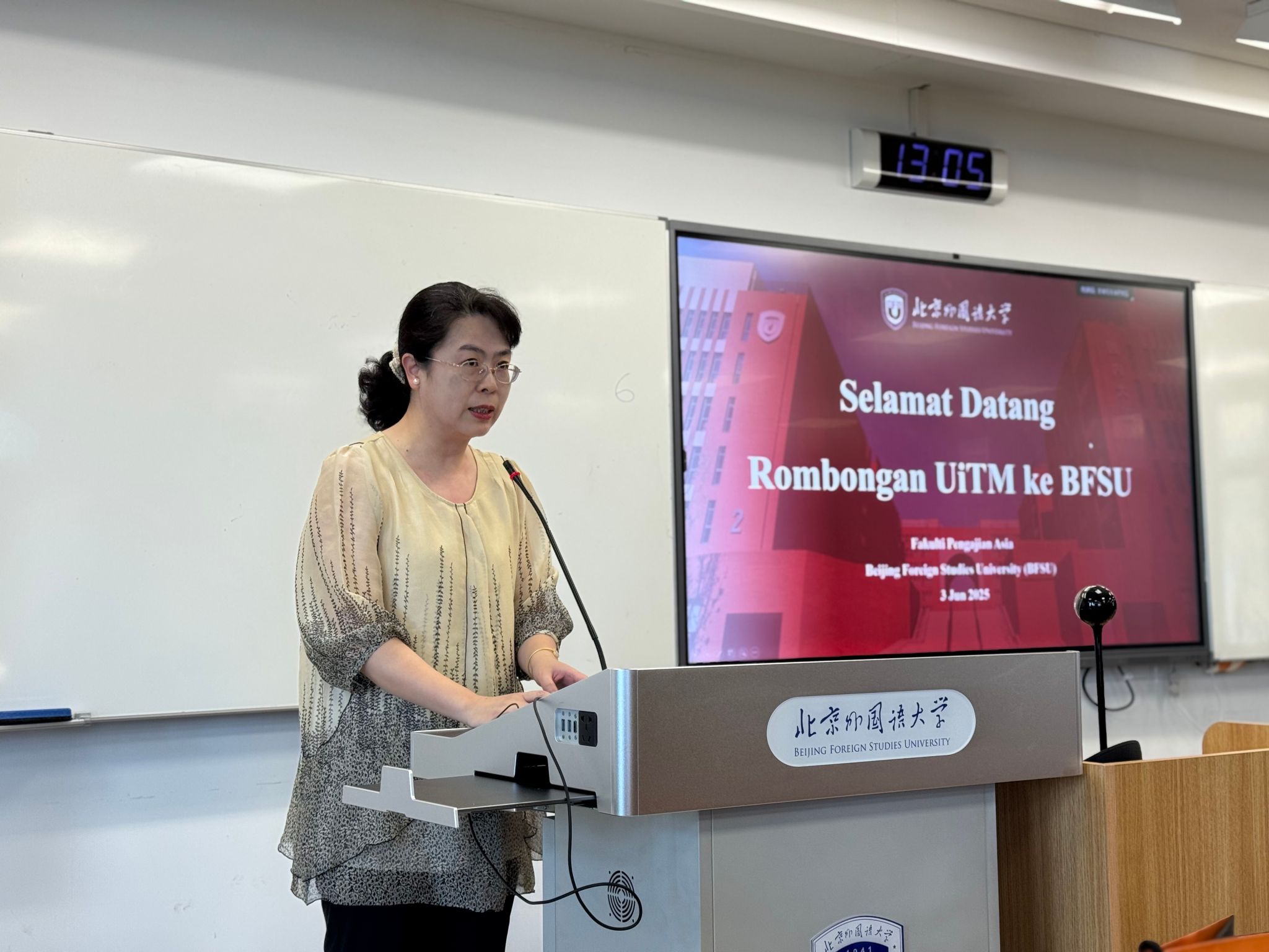 玛拉工艺大学传播与媒体学院高级讲师阿兹丽娜瓦蒂·宾蒂·恩盖农女士在致辞中表达了对北外热情接待的衷心感谢。玛拉工艺大学学生代表则介绍了玛拉工艺大学的基本情况,特别是在传播与媒体教育领域的特色与优势。