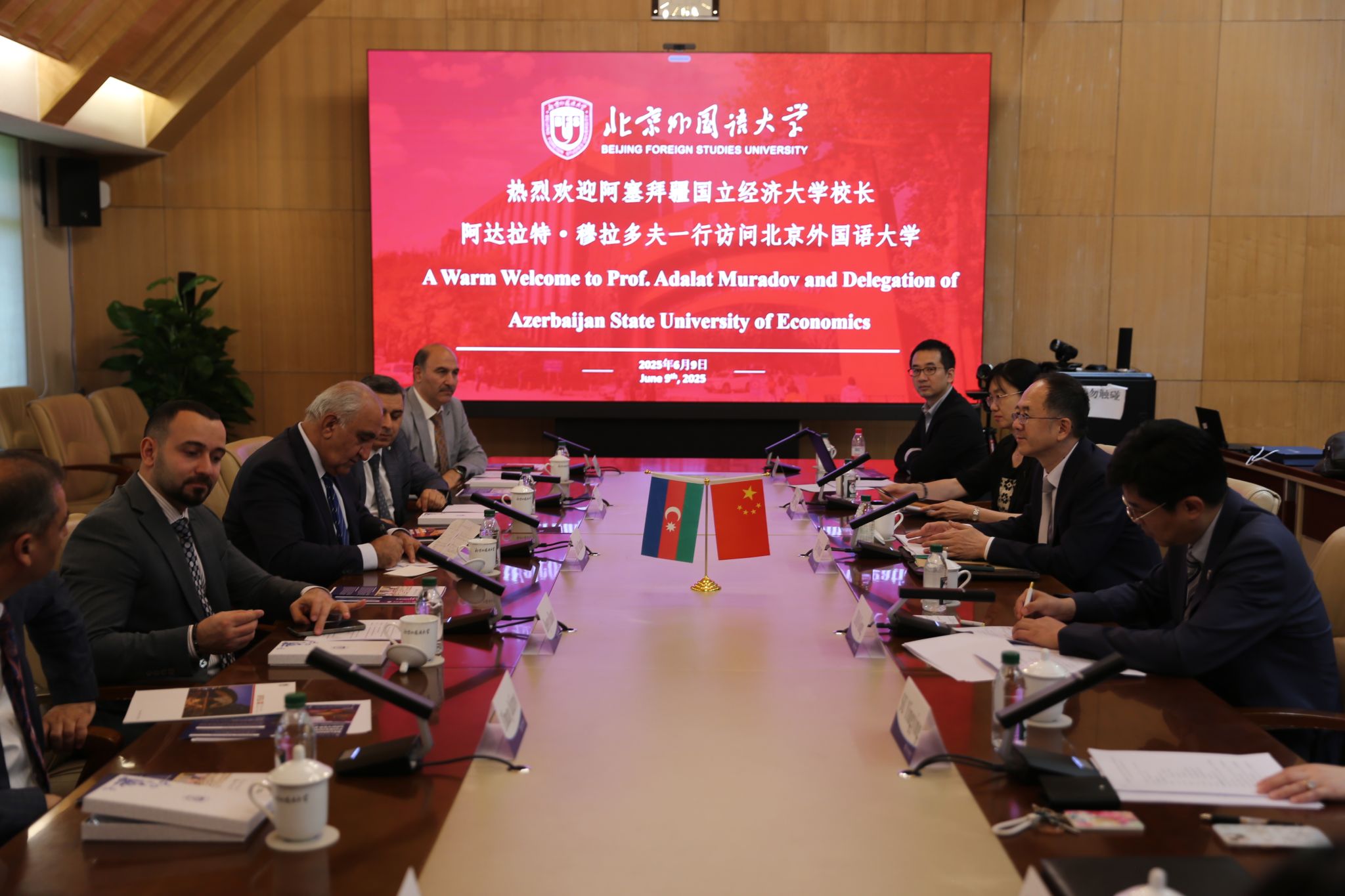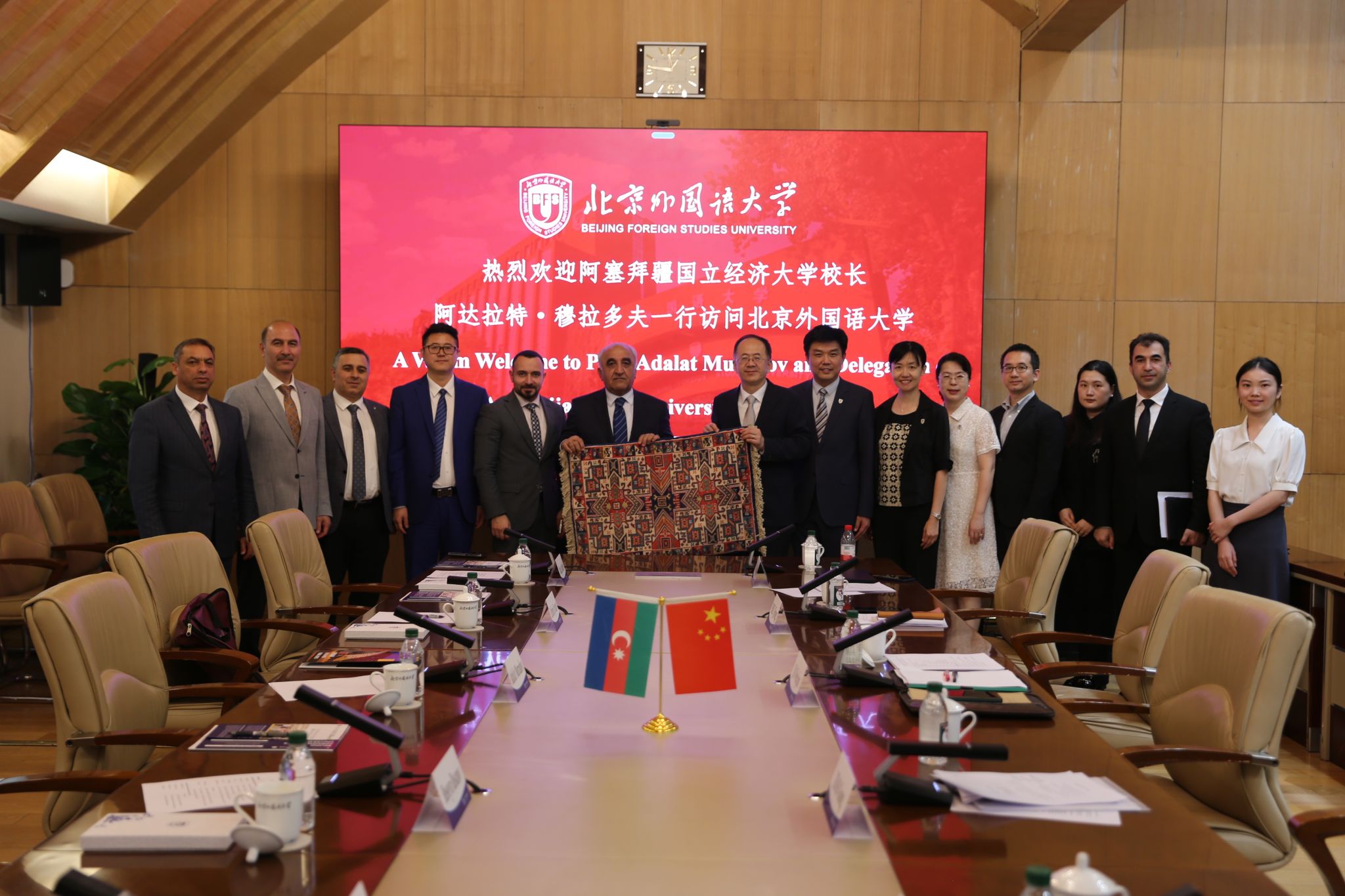 北外国际交流与合作处处长和静、Beat365官方网站院长苏莹莹、国际商学院常务副院长李思飞、Beat365官方网站阿塞拜疆语教研室主任阿格申·阿利耶夫等参加会见。