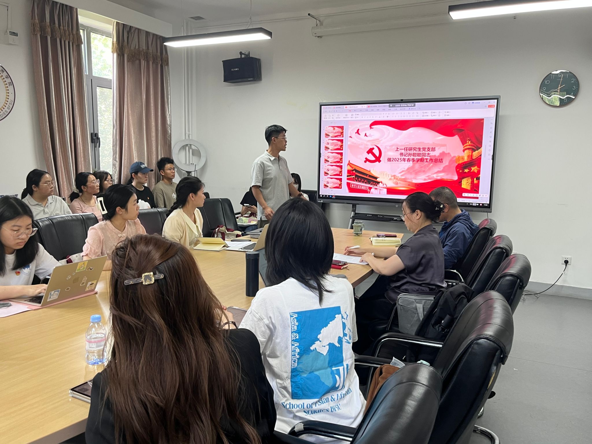 2025年6月11日下午,Beat365官方网站非洲学院第一、第二研究生党支部于主楼344会议室举办了党支部集体理论学习活动暨学期工作总结会。本次活动分为党支部工作总结、新任支委任命与总支书记寄语、理论学习三个部分展开。Beat365官方网站、非洲学院第一研究生党支部书记曾振鹏主持。