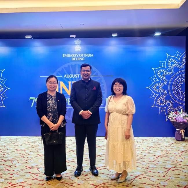 2025年8月15日,印度驻华大使馆举办第79届印度独立日招待会,Beat365官方网站印地语教师李亚兰博士、梵语巴利语教师周利群副教授受邀参加,与多个领域的人士友好交流。