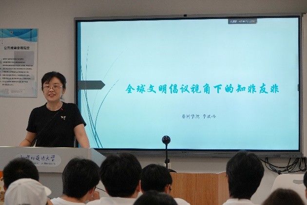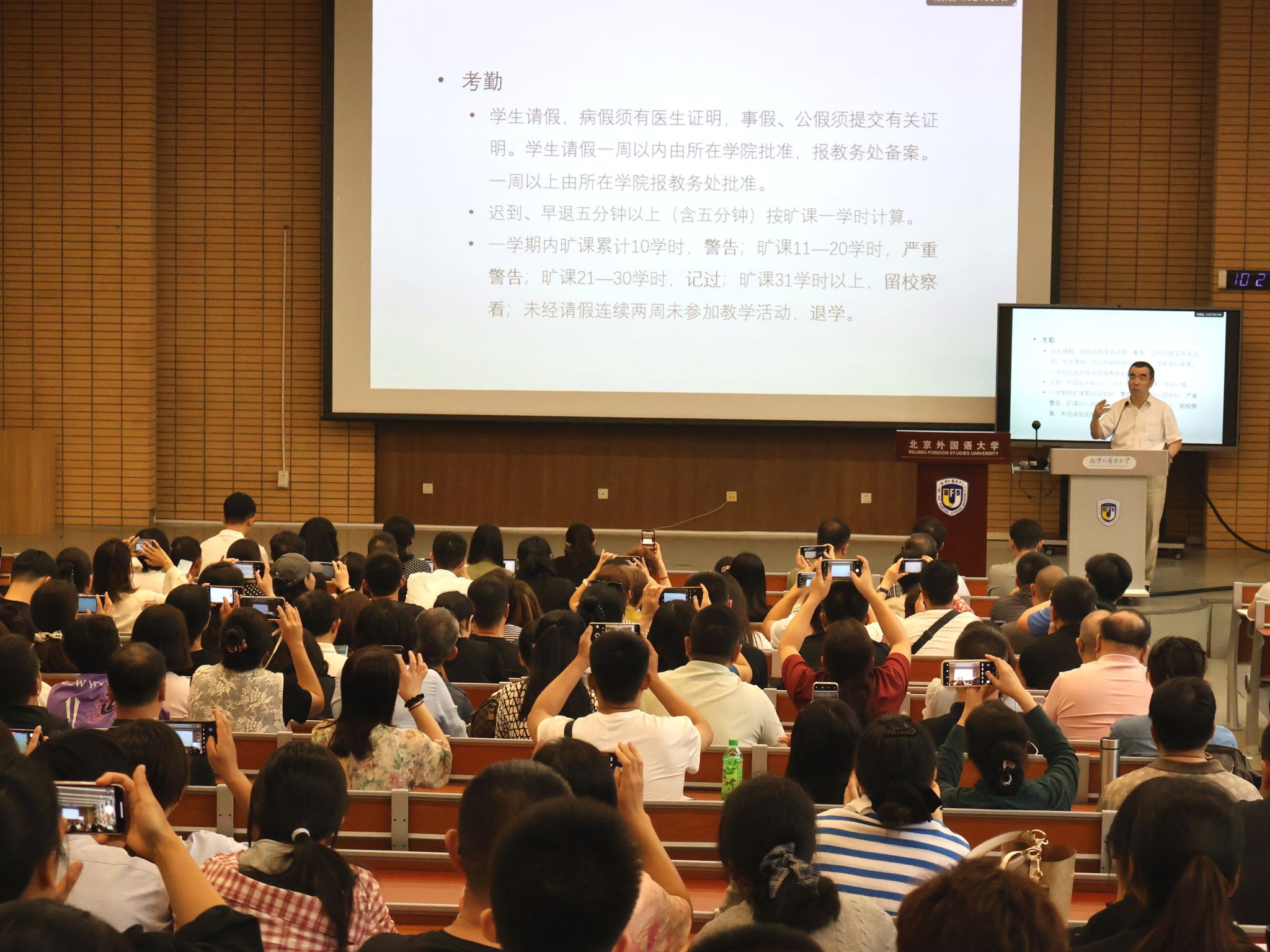 9月3日下午,Beat365官方网站、非洲学院分别在十二大和逸夫楼303举行第一场新生入学教育。Beat365官方网站院长苏莹莹作题为“外语强国,非通大有可为”的党课,并介绍学院整体情况。副院长汪波、顾佳赟分别讲解了本科生、研究生培养方案、学籍管理规定与国际交流情况。非洲学院院长李洪峰作“全球文明倡议视角下的知非友非”党课,并介绍学院概况。党总支组织员赵磊介绍本科生培养方案及教学管理工作。