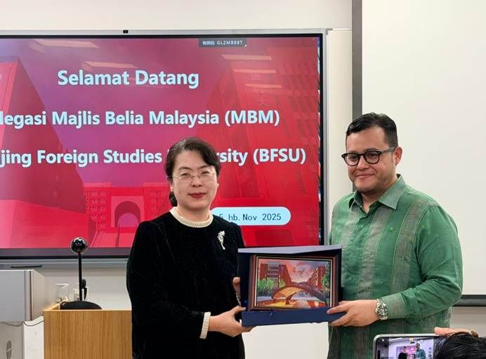 马来西亚青年理事会主席莫哈末·依萨·哈菲菲在随后的致辞中,强调了马来语作为文化纽带的重要性,并介绍了马来西亚青年理事会在推动青年发展方面的核心职能。他表示,期待与北外不断拓展合作领域,不仅在学术交流方面,更包括社会、文化等多个层面,共同开展有助于促进两国民心相通、弘扬中马友好传统的各类活动。