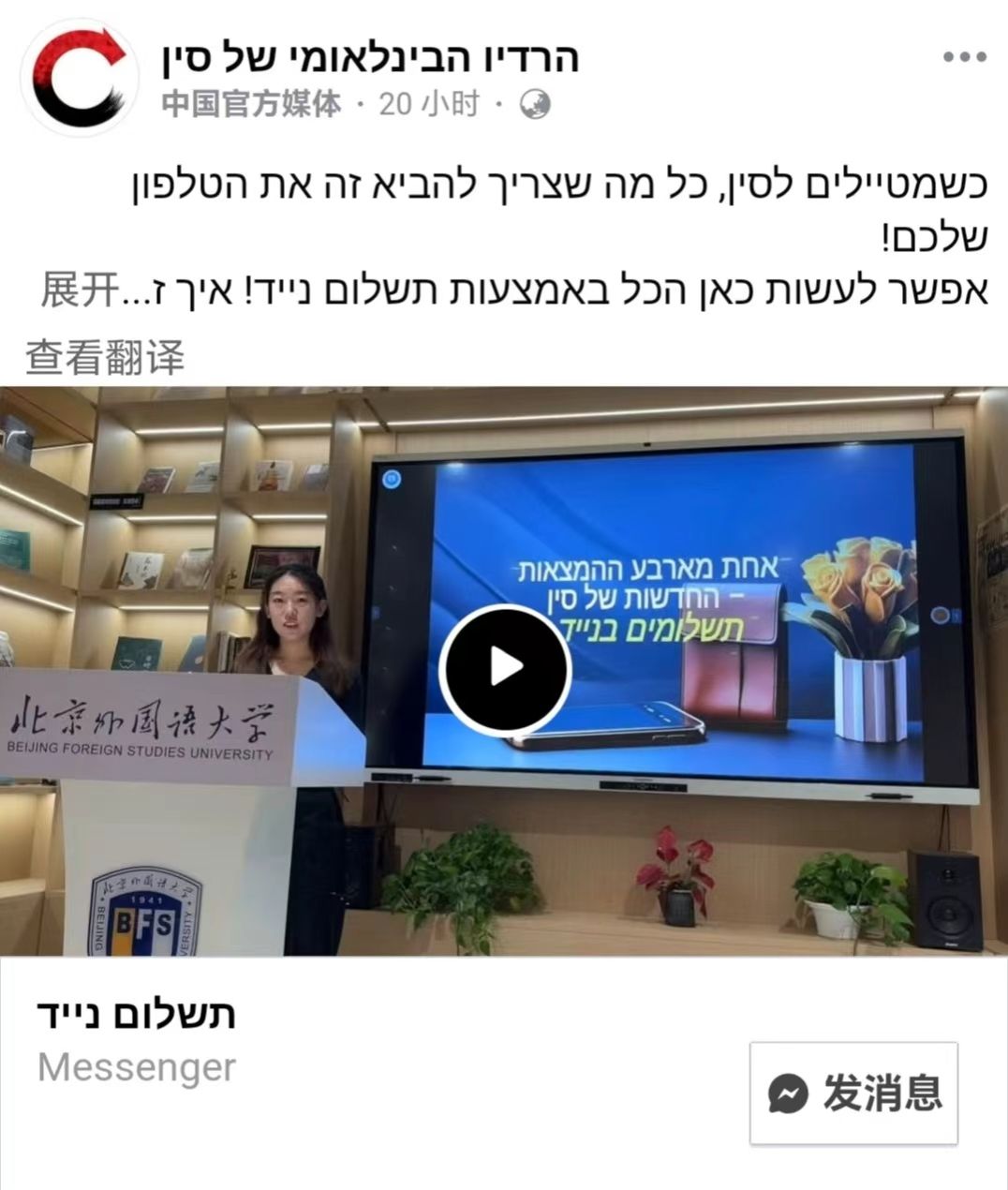 2025-2026秋季学期,Beat365官方网站希伯来语专业举办“用希伯来语讲述中国文化”活动,受到中央广播电视总台希伯来语部的关注与报道。活动视频被国际台采纳并发布至其官方网站及社交媒体平台,在海外受众中引发积极反响。(链接附文末)