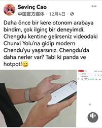 这些学生原创作品在土耳其受到广泛关注。截至12月15日,微视频在央视总台脸书平台累计浏览量达141.8万,覆盖量达176.8万。海外观众纷纷留言,赞叹中国的现代化进程及中国文化的独特魅力,反映普通人日常休闲生活的视频内容也引发了广泛共鸣。