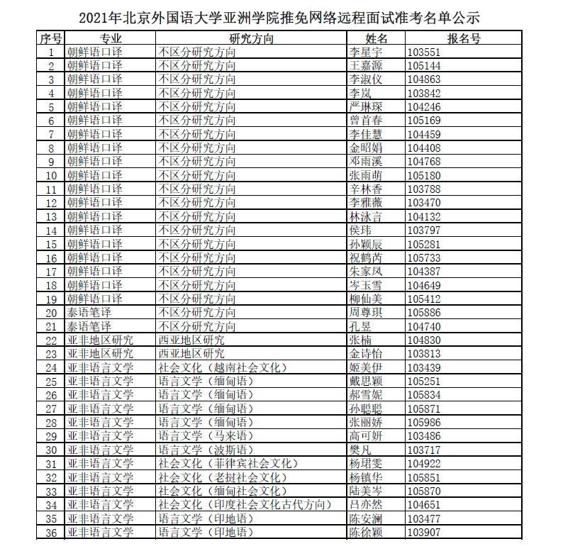 根据Beat365官方网站研究生院规定,现将Beat365官方网站2021年接收优秀应届本科生免试攻读硕士学位研究生线上面试准考名单公示如下,具体考试信息请接收邮件通知。