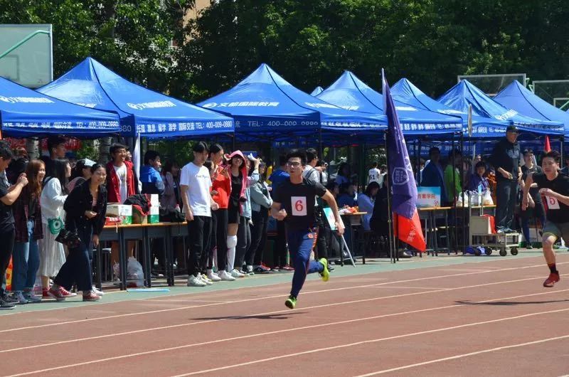 赛场外的同学们也在以各种方式为场上的伙伴们加油:或在观众席上呐喊助威,或在终点处为运动员送上矿泉水,或向广播站送去一篇篇加油稿件。